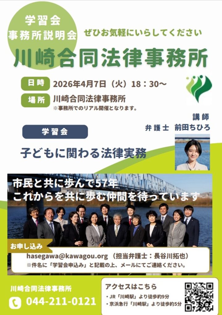 【4/7開催】司法修習生(予定者)・経験弁護士向け学習会・事務所説明会に参加しませんか